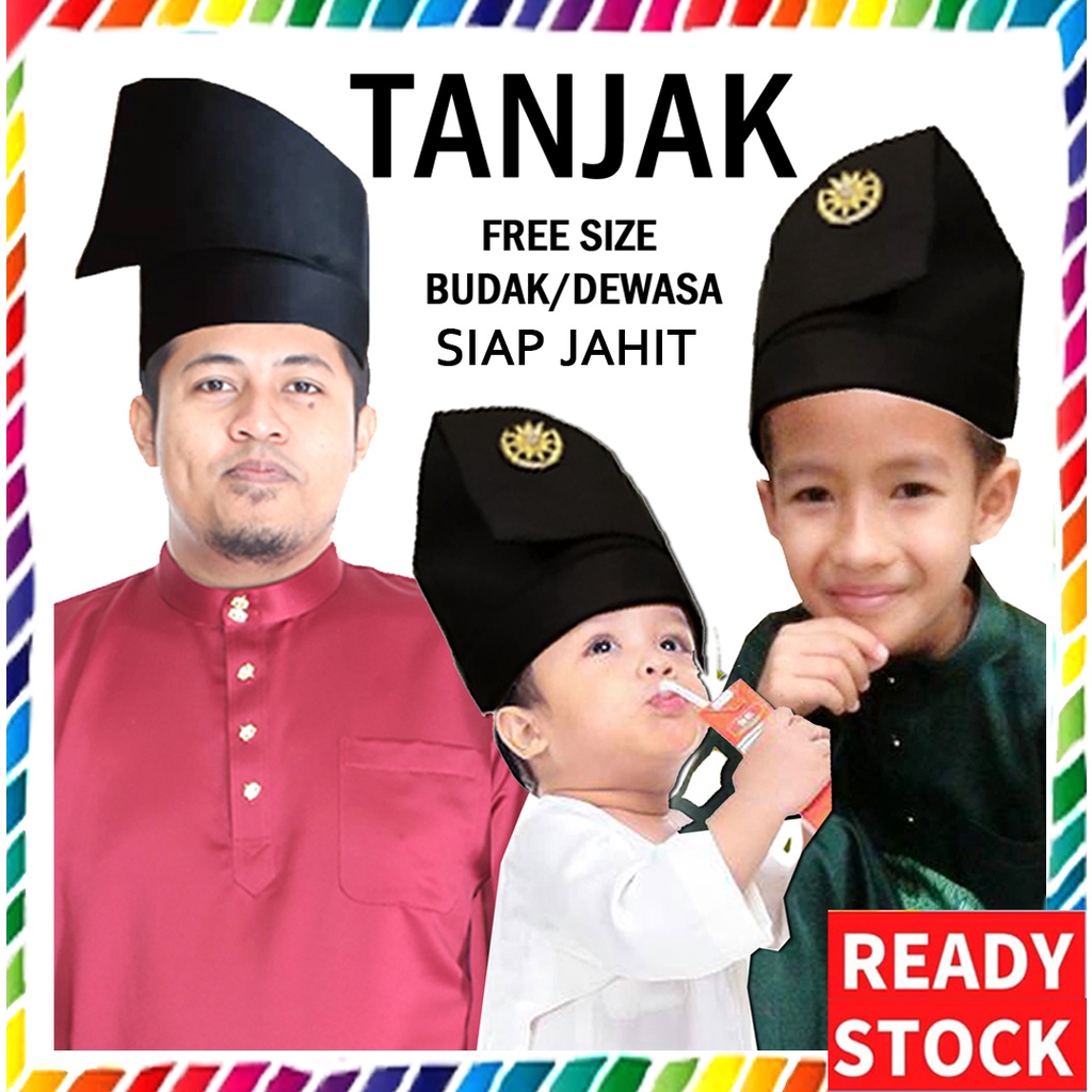 Tanjak Free Size Budak Dewasa New Item Ready Stok On Sale Tengkolok Hitam Keras Siap Jahit Capal Baju Melayu Shopee Malaysia